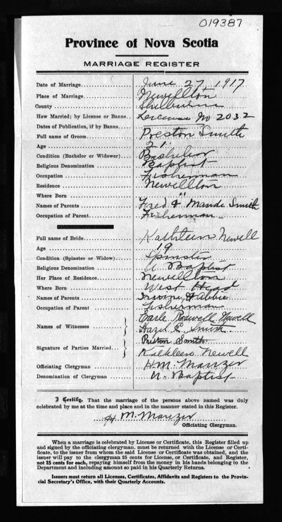 Registration: Year: 1917 number: 19387