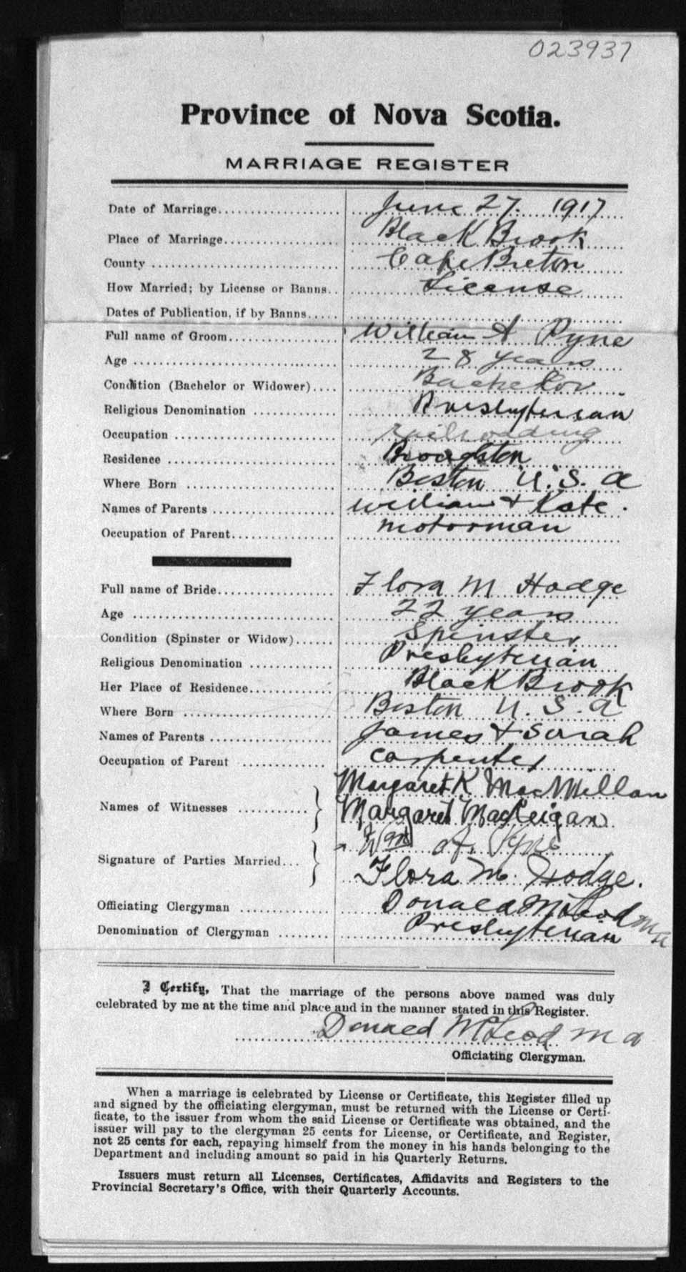 Registration: Year: 1917 number: 23937