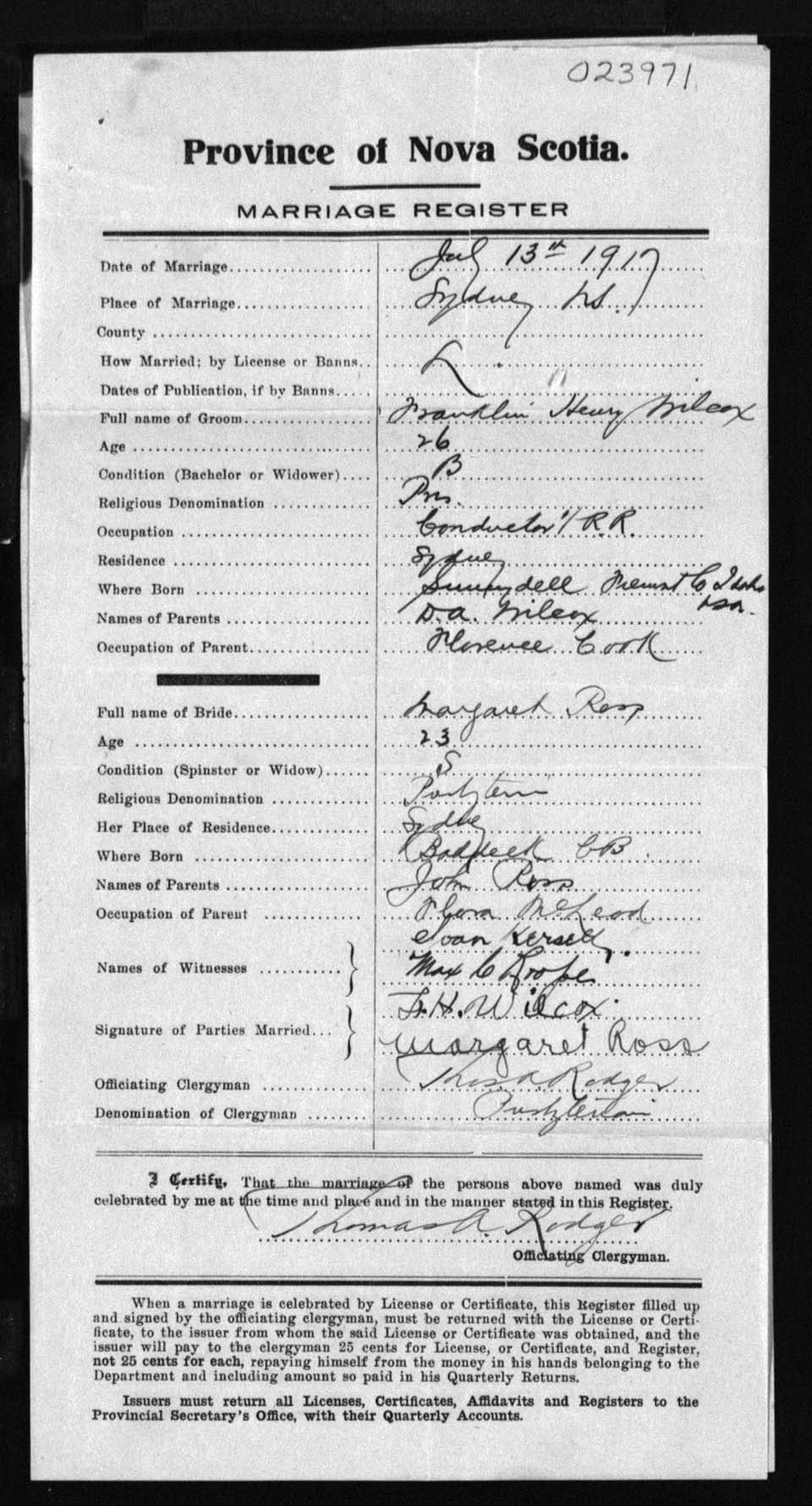 Registration: Year: 1917 number: 23971
