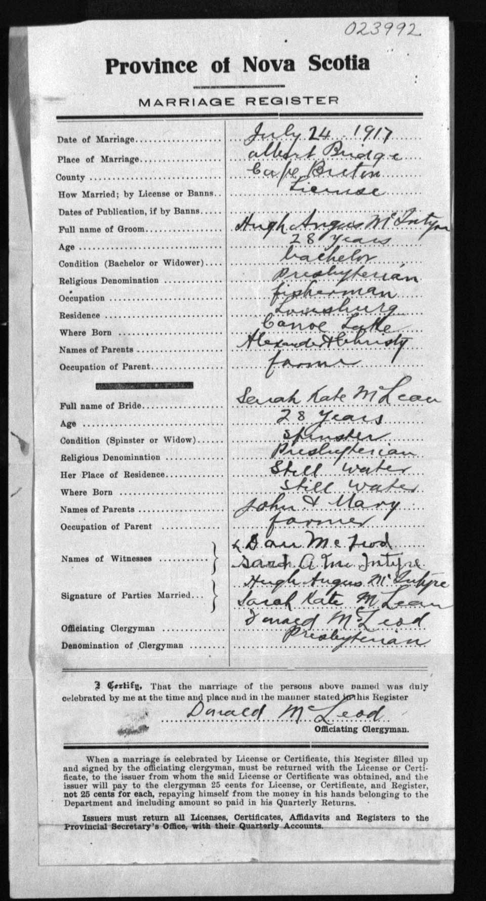 Registration: Year: 1917 number: 23992
