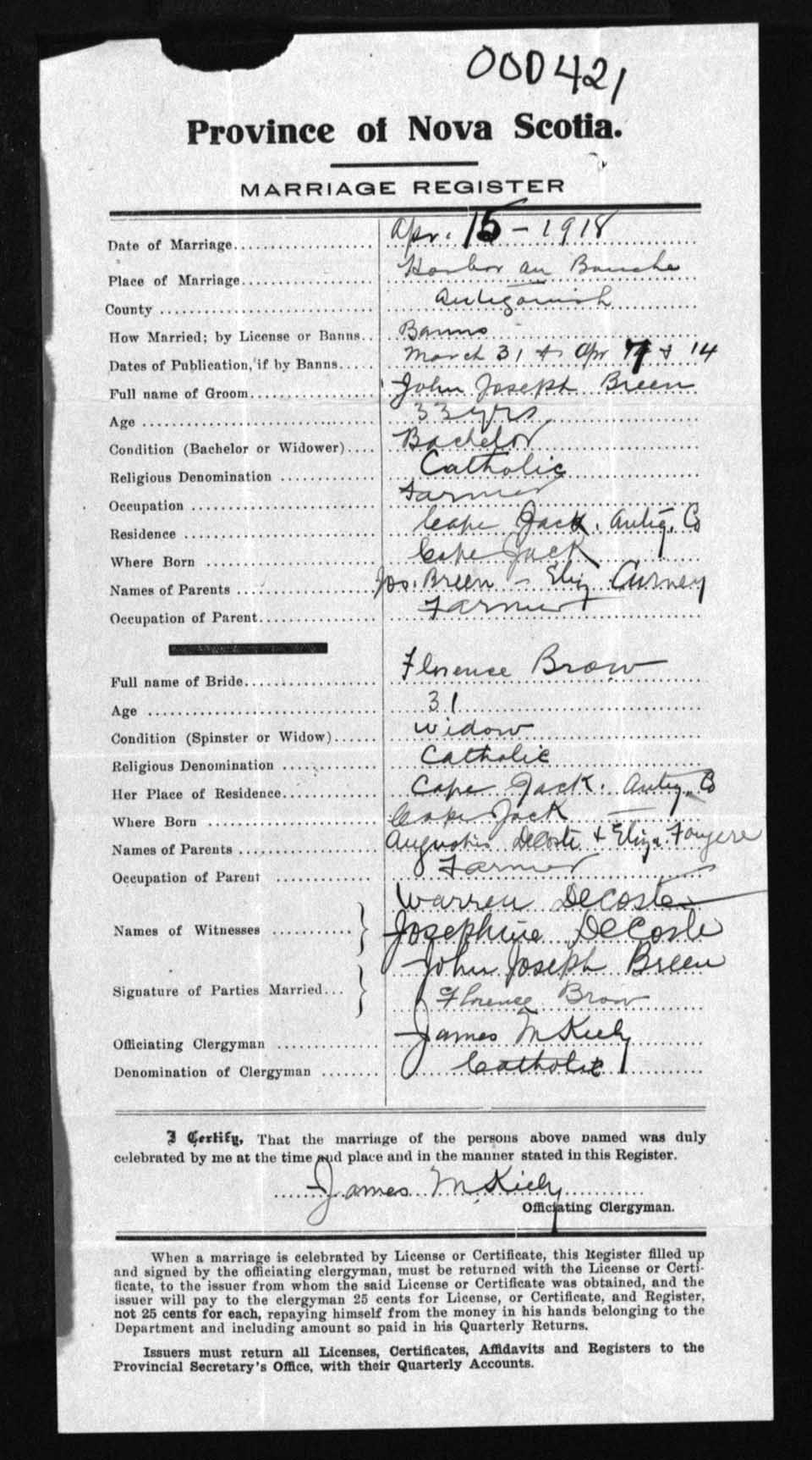 Registration: Year: 1918 number: 0421