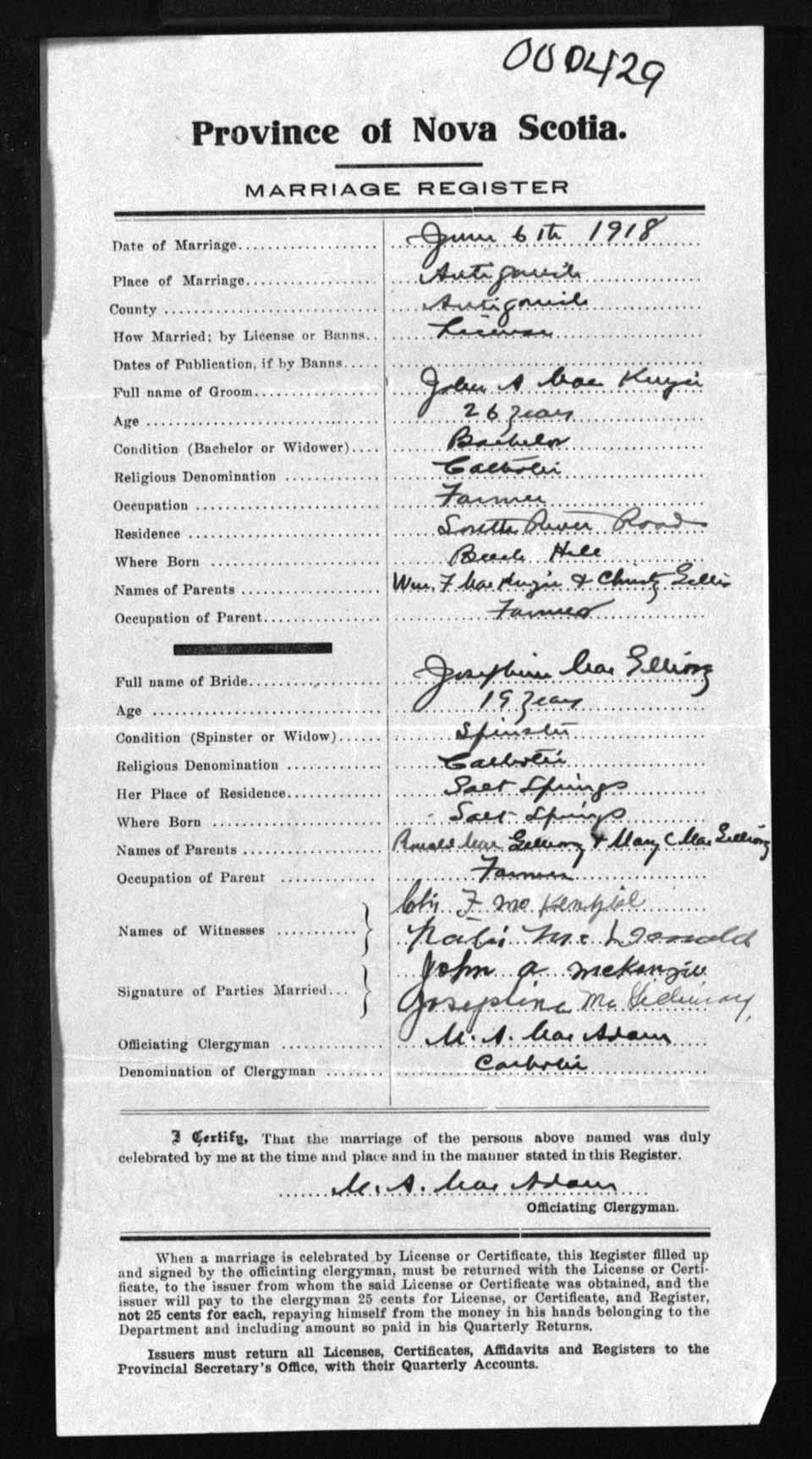 Registration: Year: 1918 number: 0429
