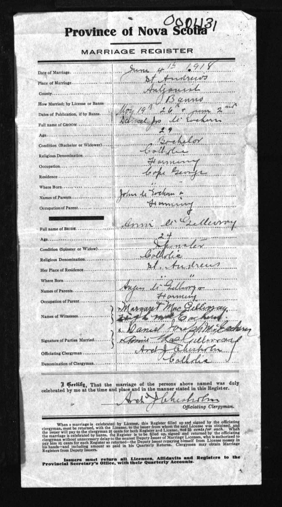 Registration: Year: 1918 number: 0431
