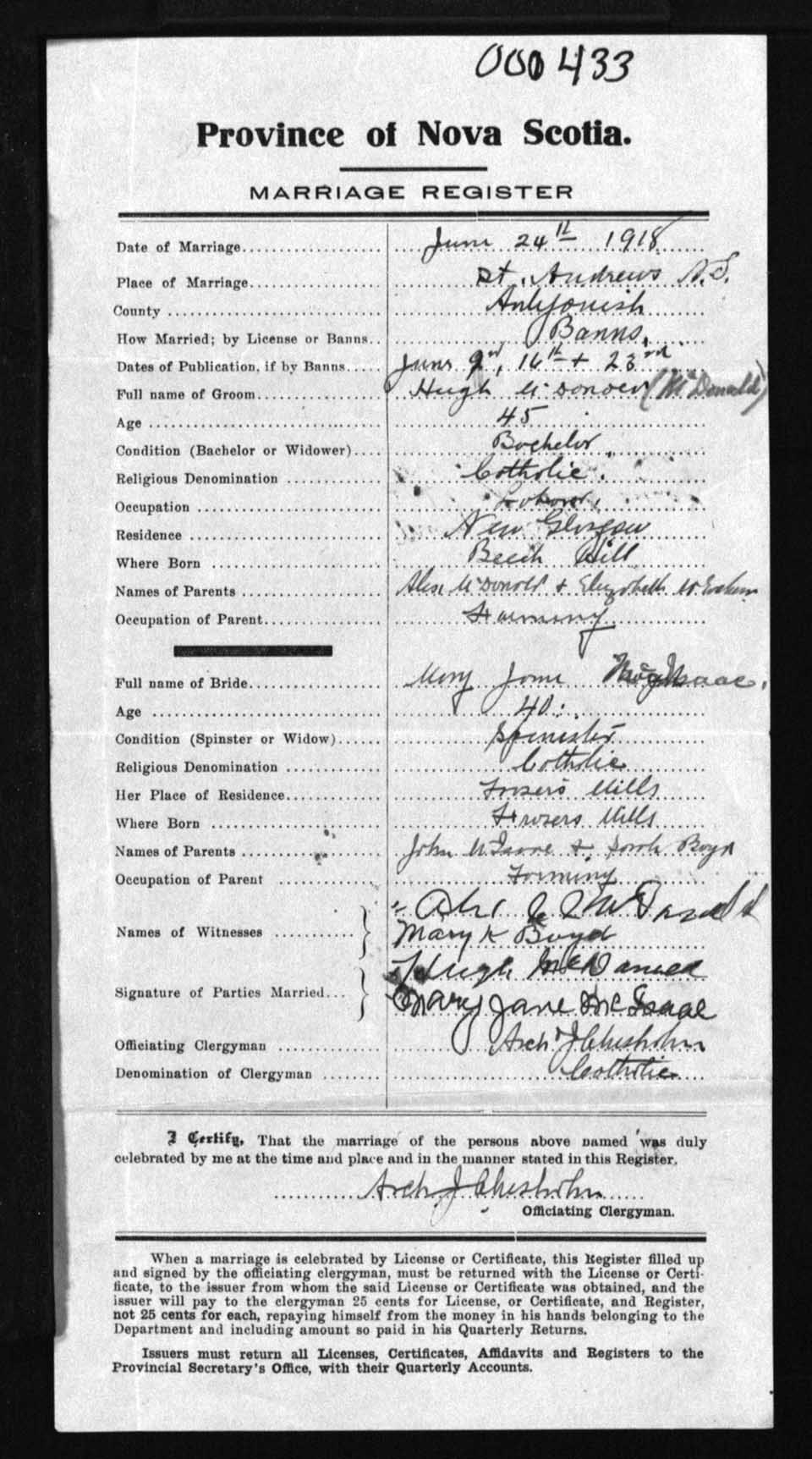 Registration: Year: 1918 number: 0433