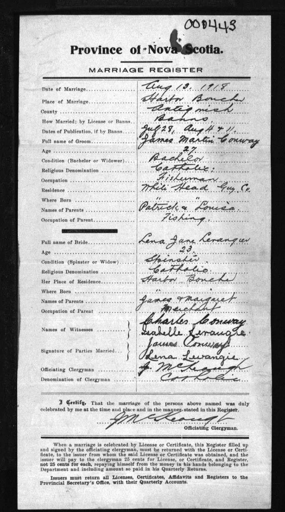 Registration: Year: 1918 number: 0443