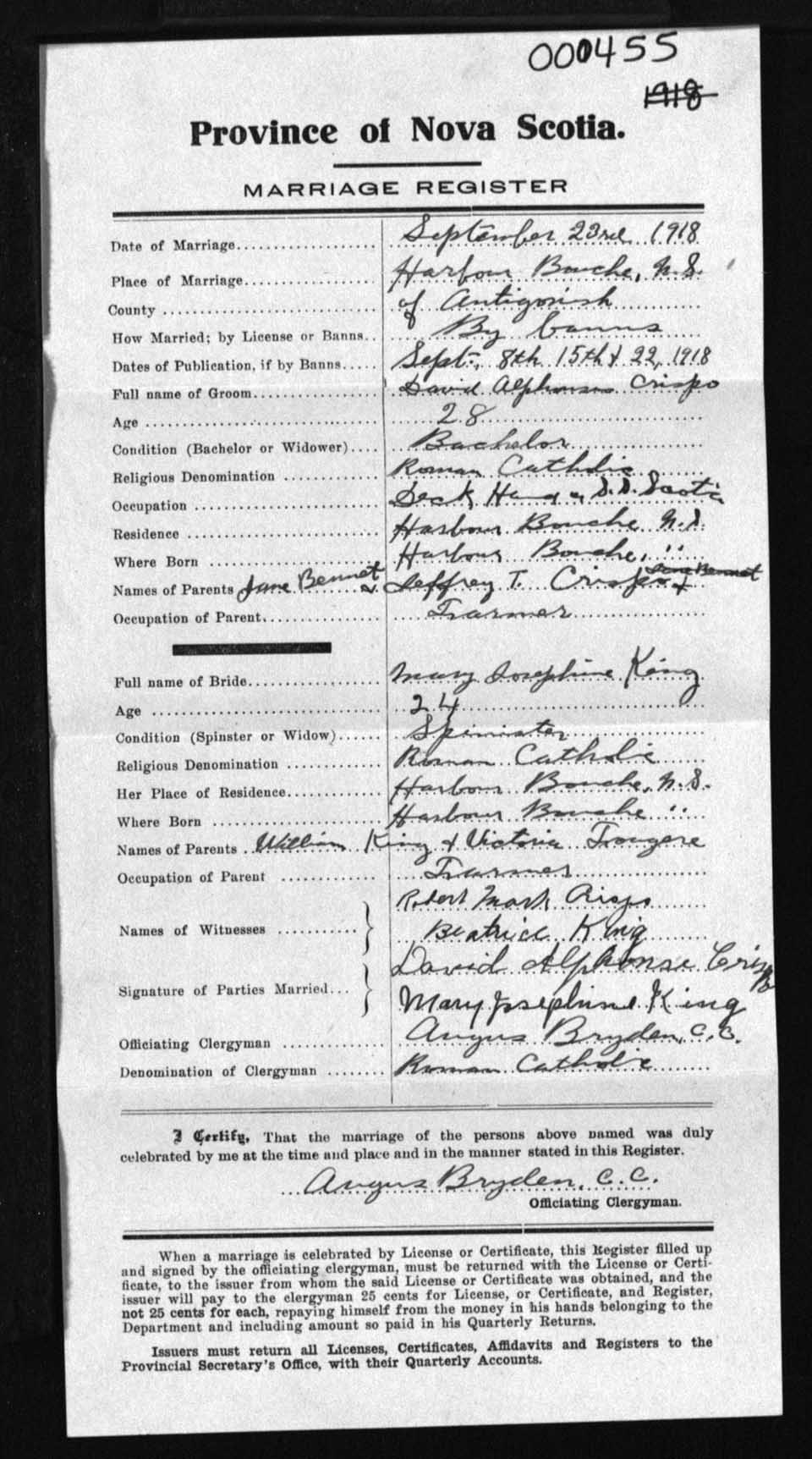 Registration: Year: 1918 number: 0455