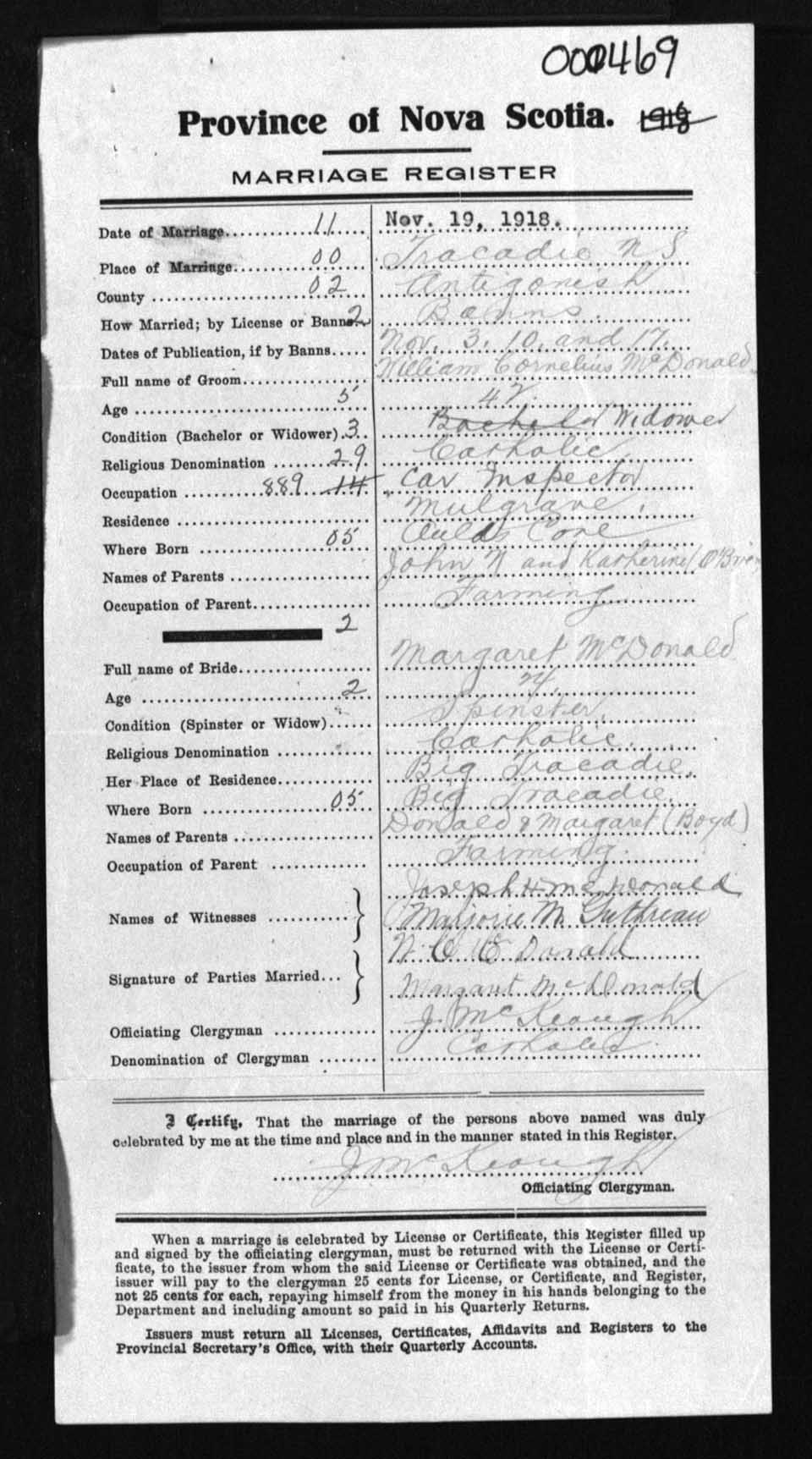 Registration: Year: 1918 number: 0469