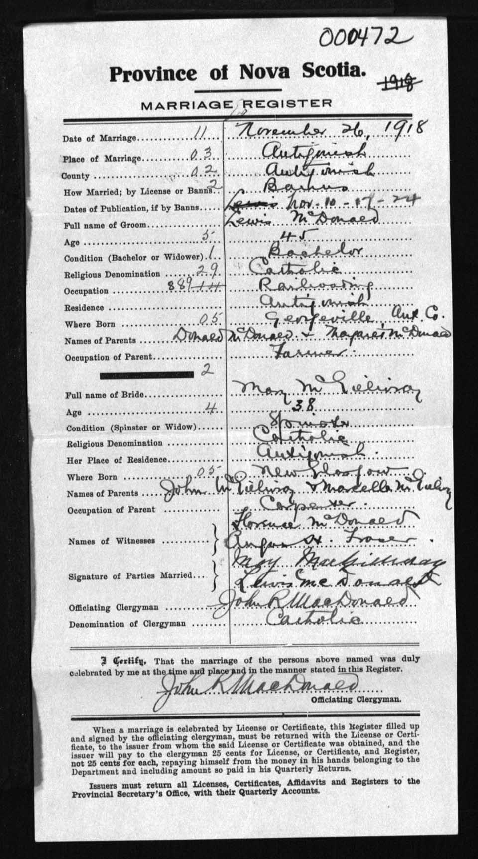 Registration: Year: 1918 number: 0472