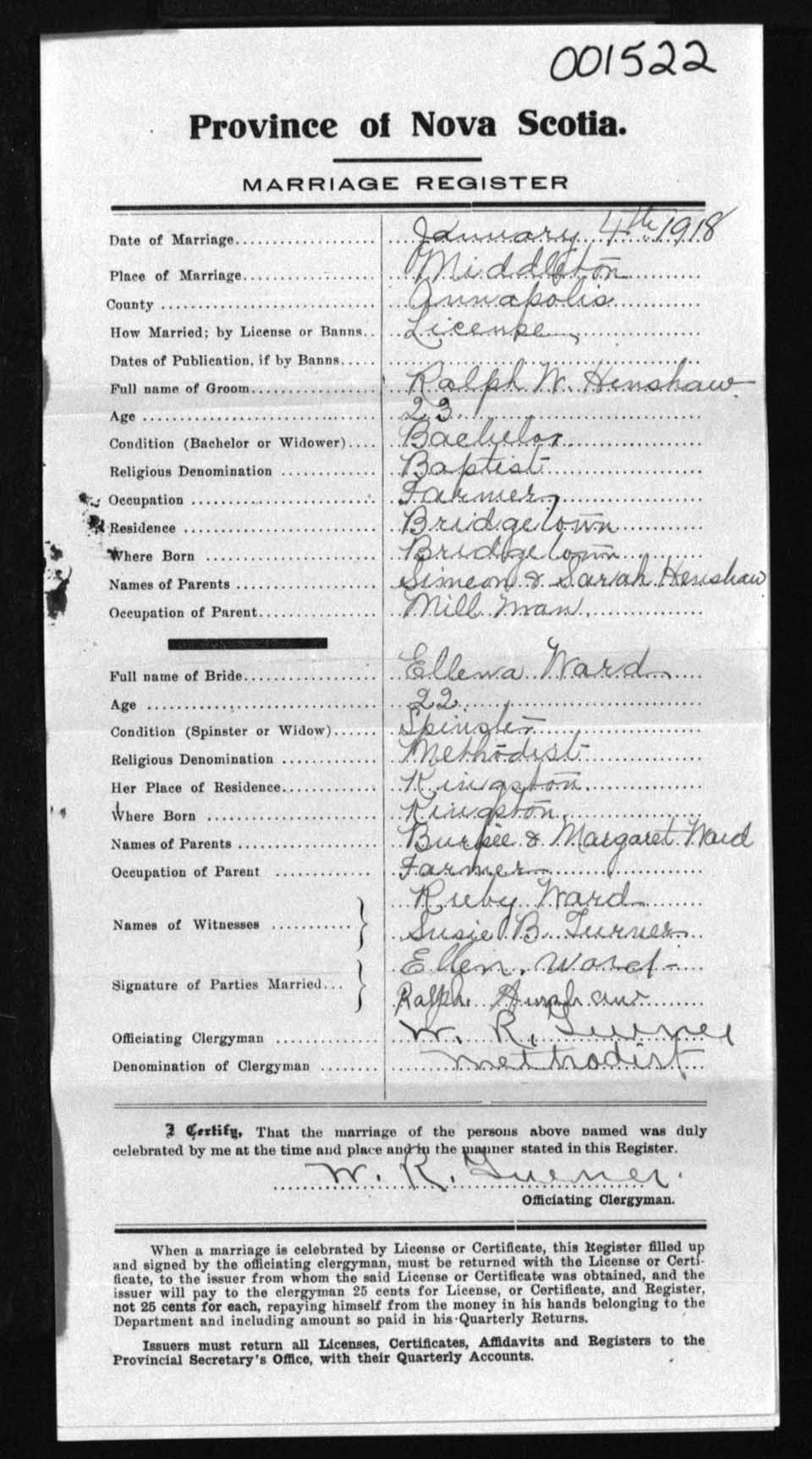 Registration: Year: 1918 number: 1522