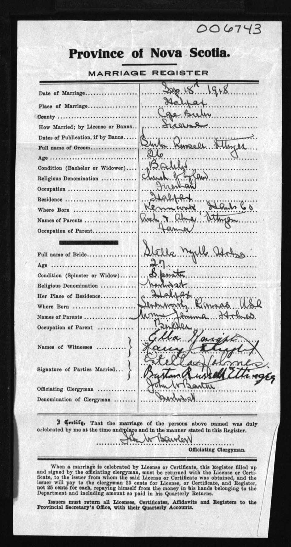 Registration: Year: 1918 number: 6743
