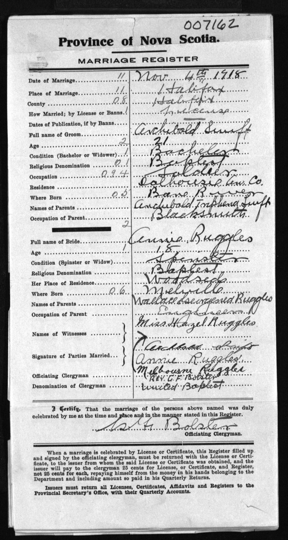 Registration: Year: 1918 number: 7162
