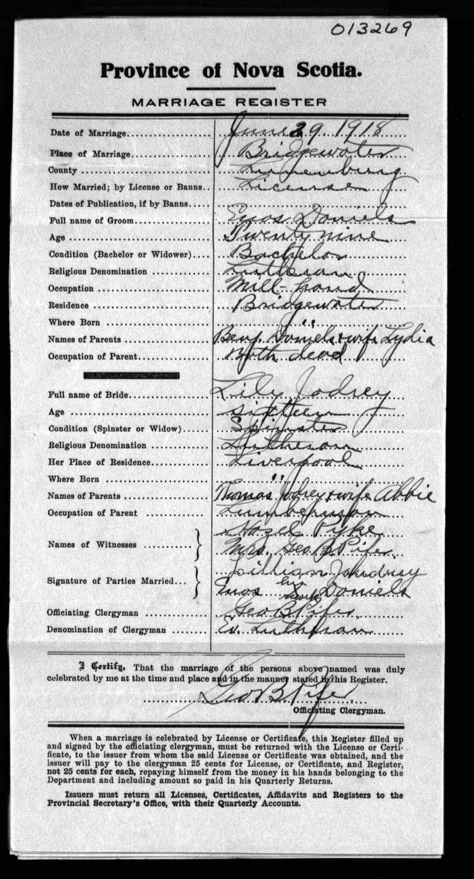 Registration: Year: 1918 number: 13269