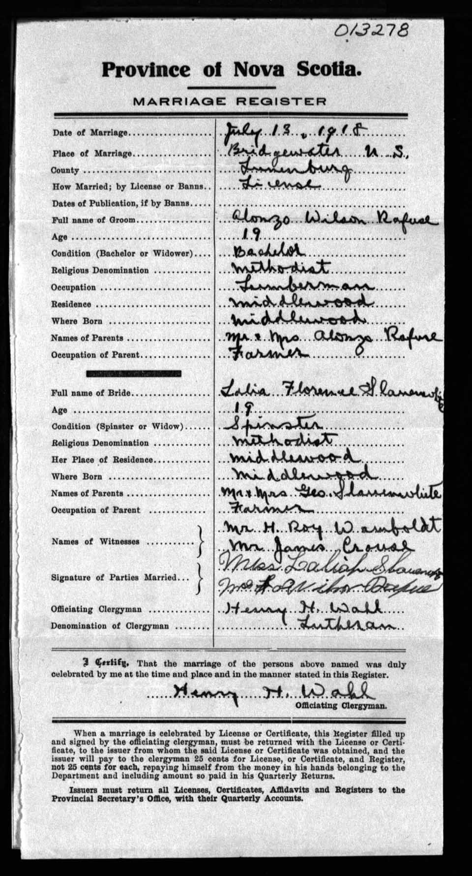 Registration: Year: 1918 number: 13278