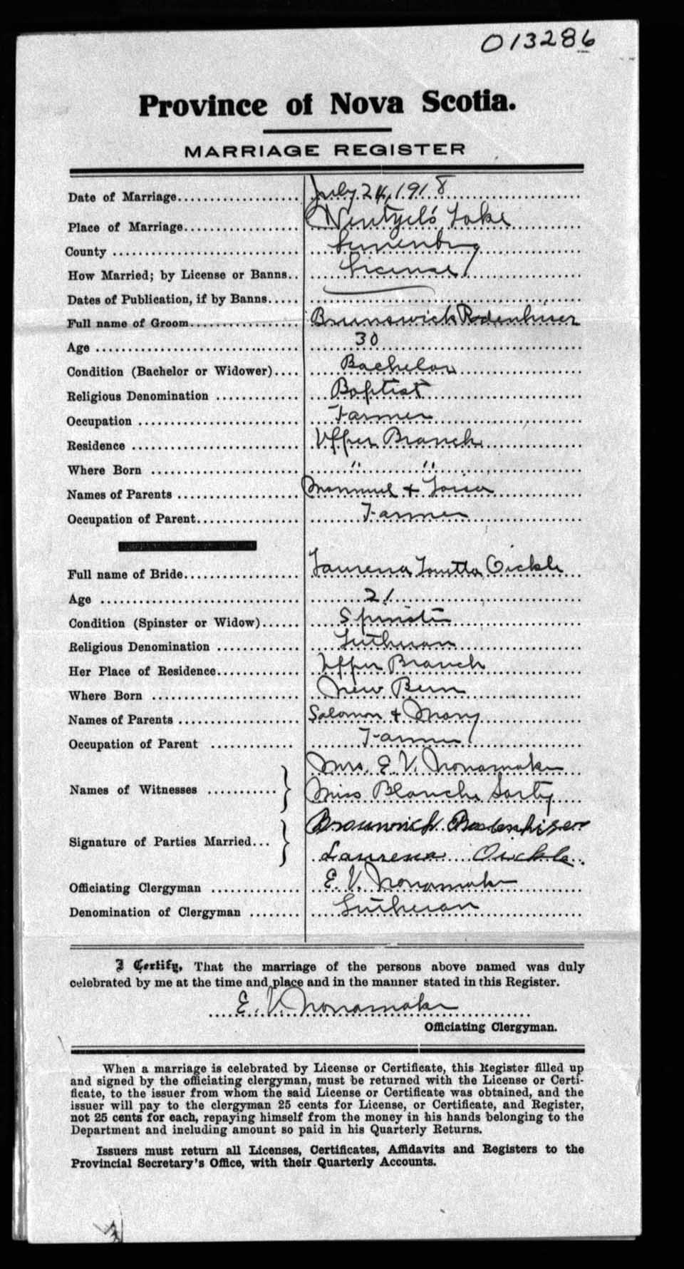 Registration: Year: 1918 number: 13286