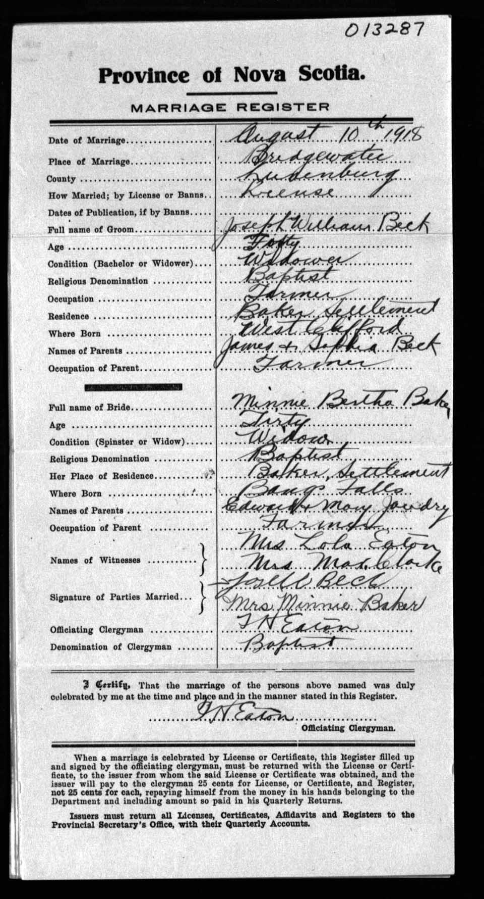 Registration: Year: 1918 number: 13287