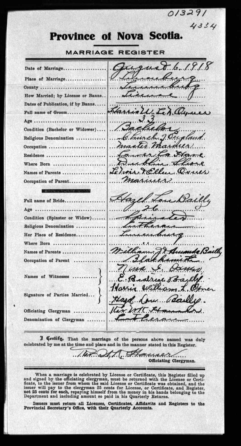 Registration: Year: 1918 number: 13291