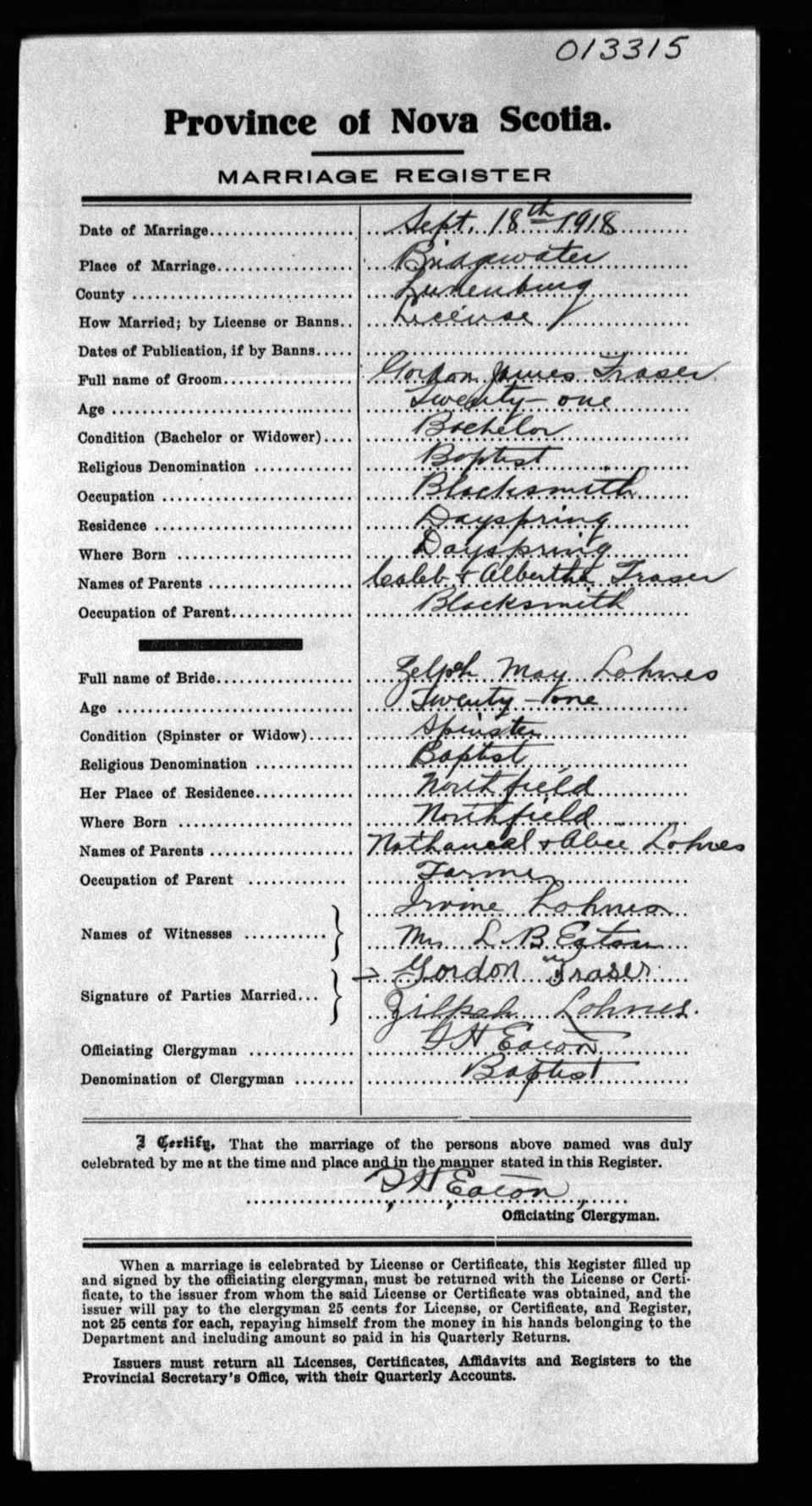 Registration: Year: 1918 number: 13315