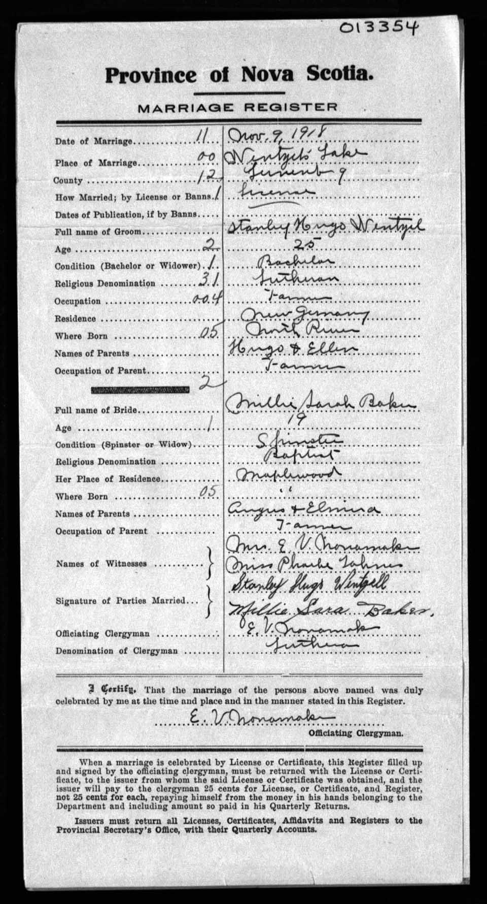 Registration: Year: 1918 number: 13354