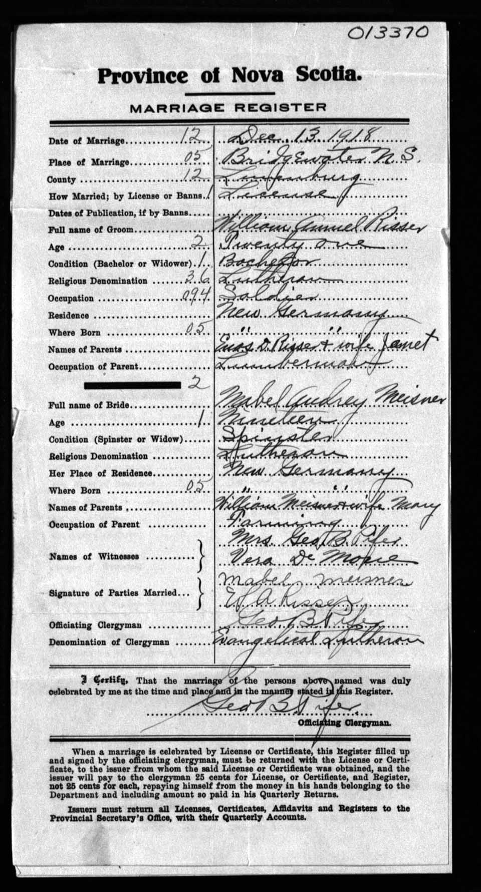 Registration: Year: 1918 number: 13370
