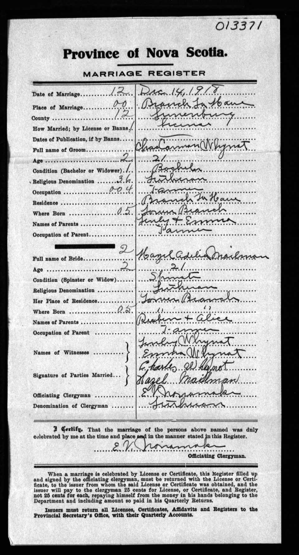 Registration: Year: 1918 number: 13371