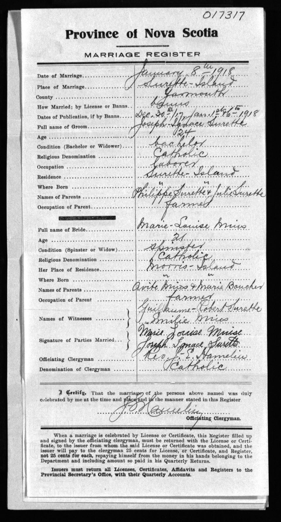 Registration: Year: 1918 number: 17317