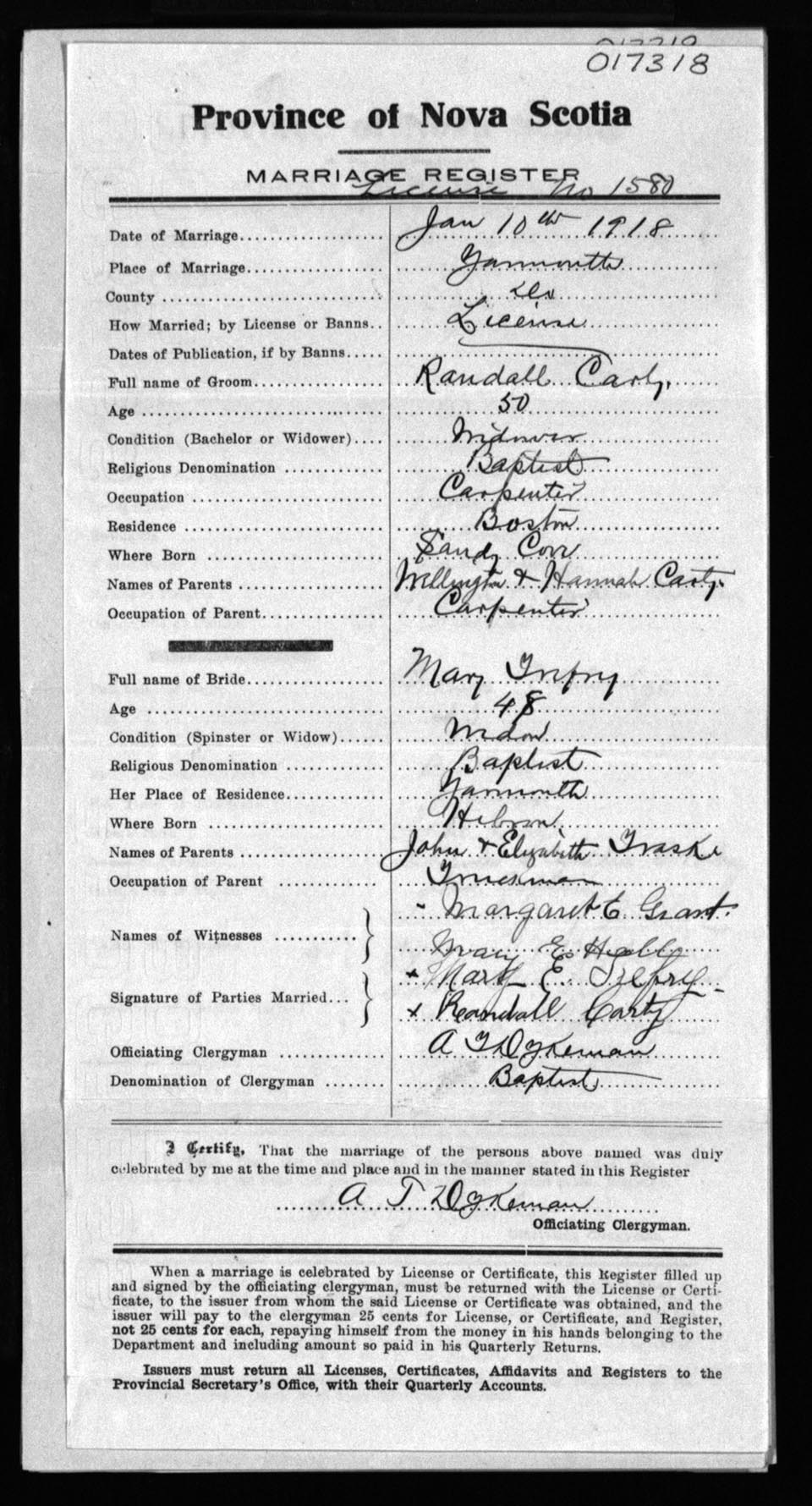 Registration: Year: 1918 number: 17318