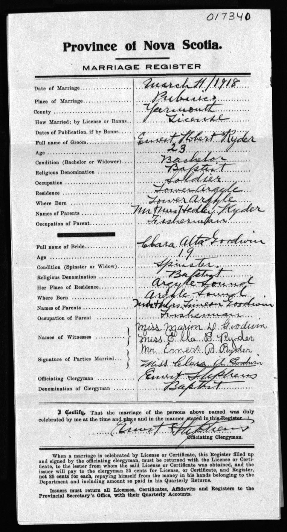 Registration: Year: 1918 number: 17340