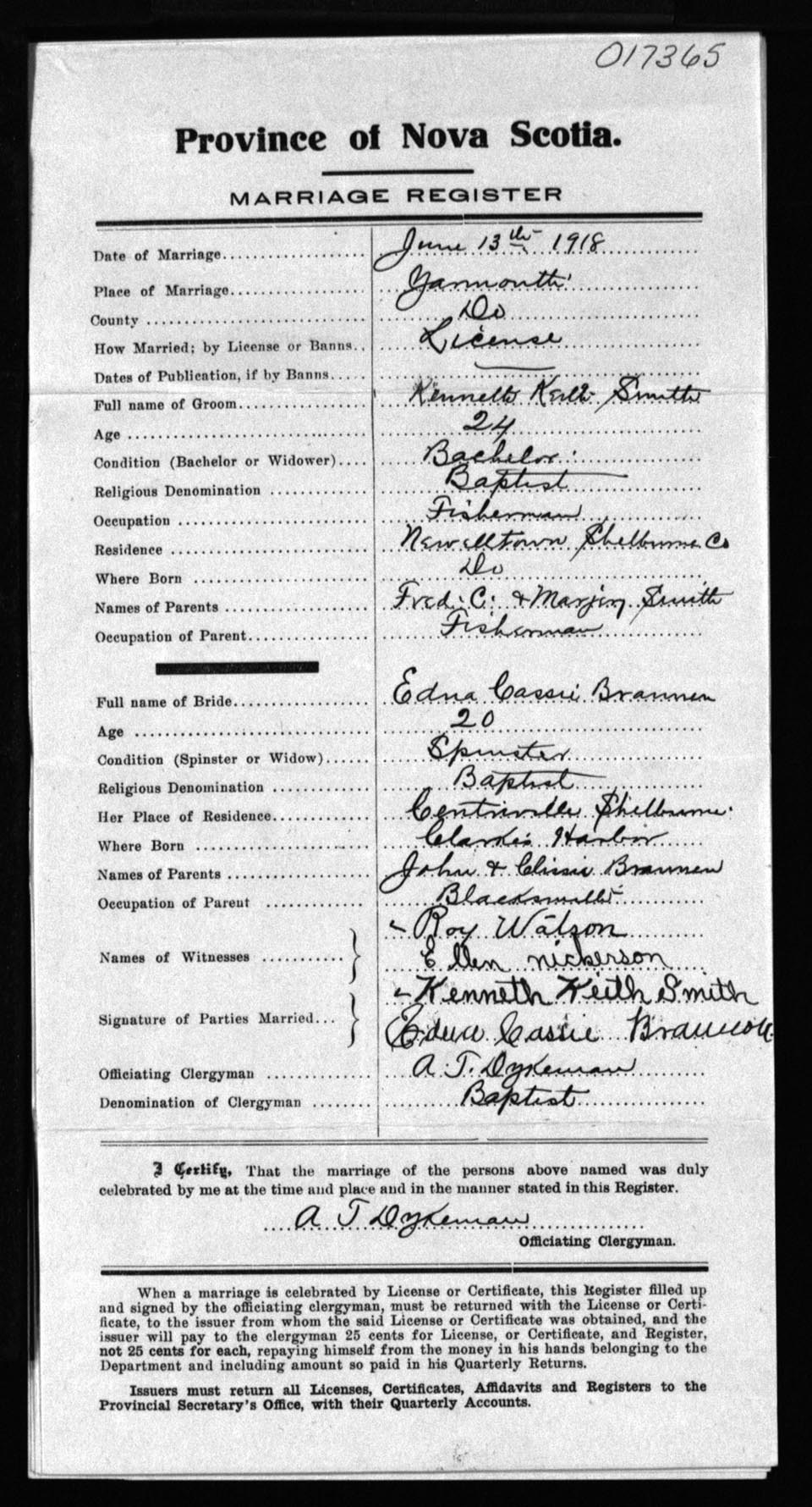 Registration: Year: 1918 number: 17365