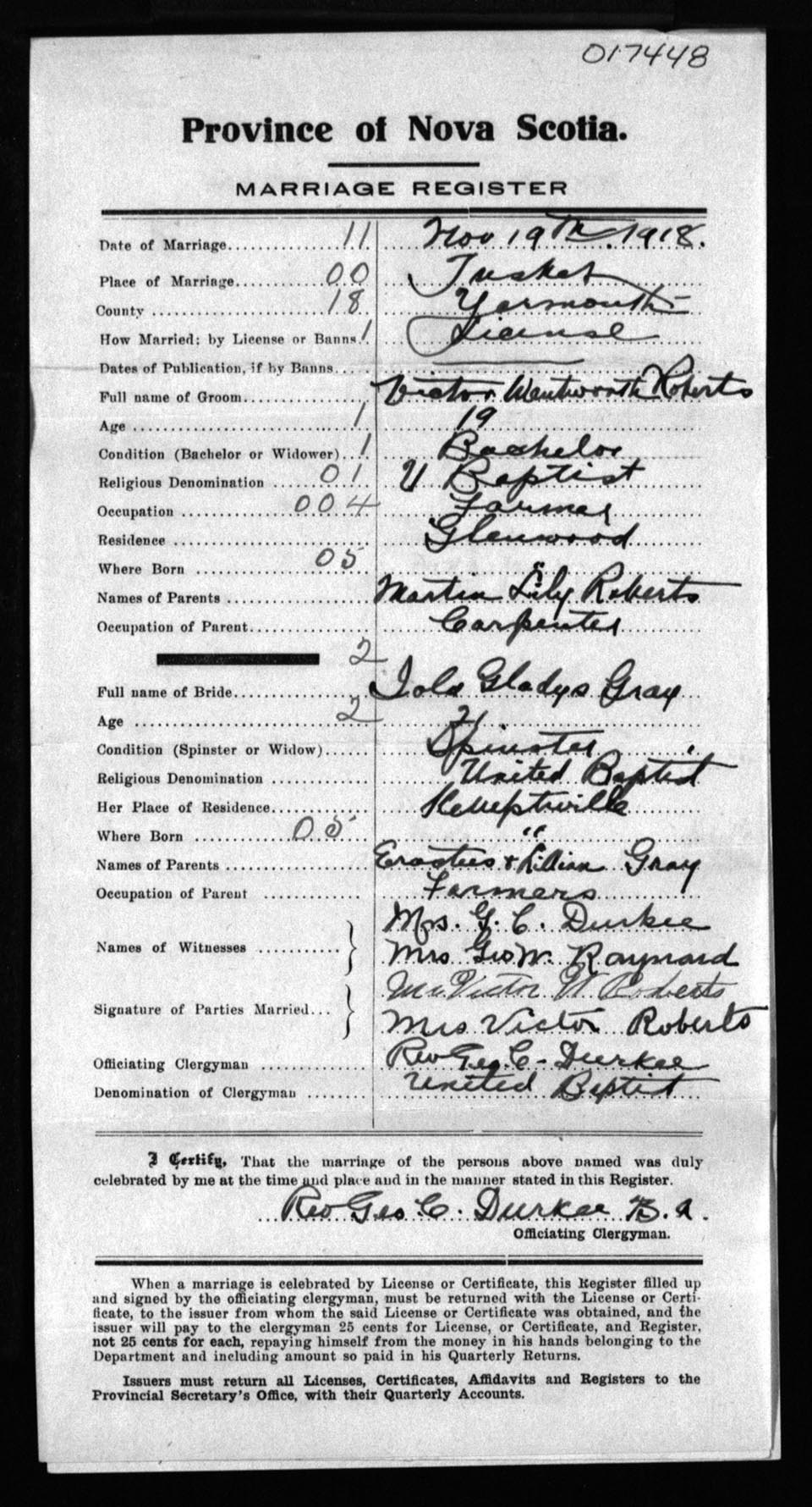 Registration: Year: 1918 number: 17448