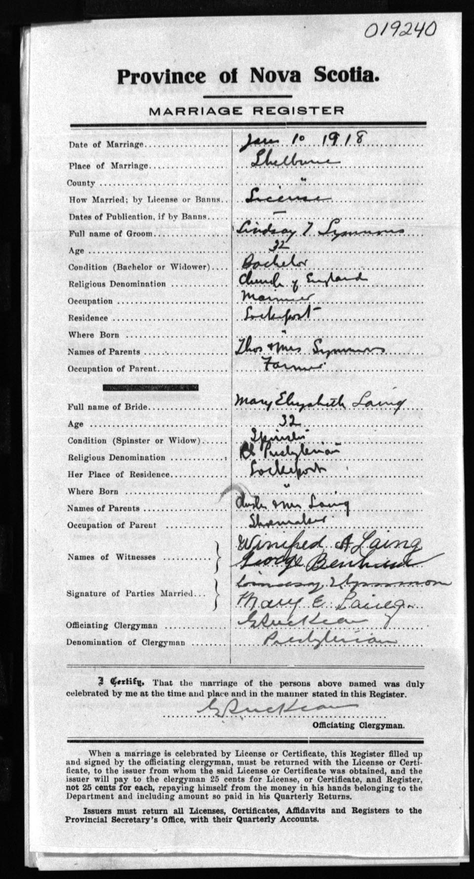 Registration: Year: 1918 number: 19240