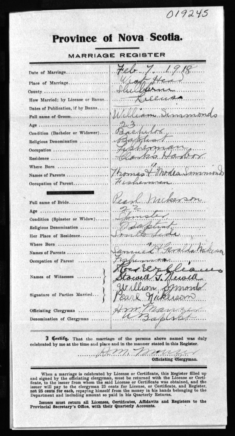 Registration: Year: 1918 number: 19245