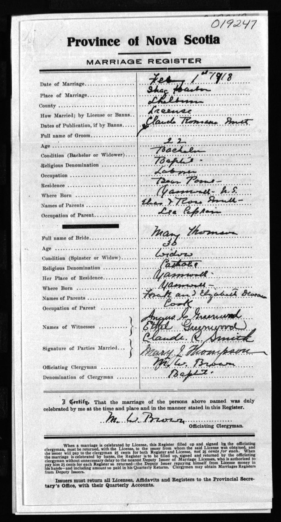 Registration: Year: 1918 number: 19247