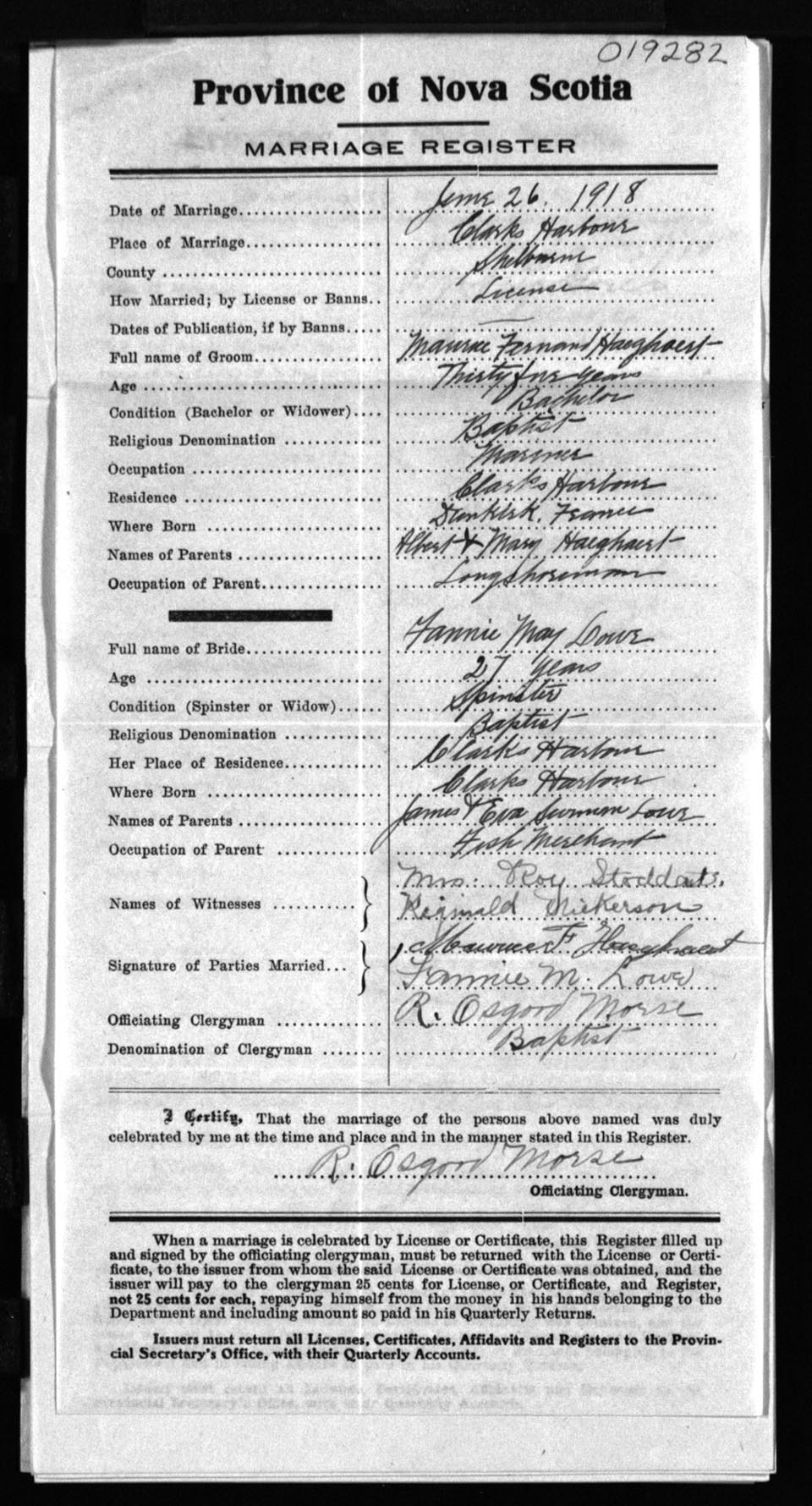Registration: Year: 1918 number: 19282