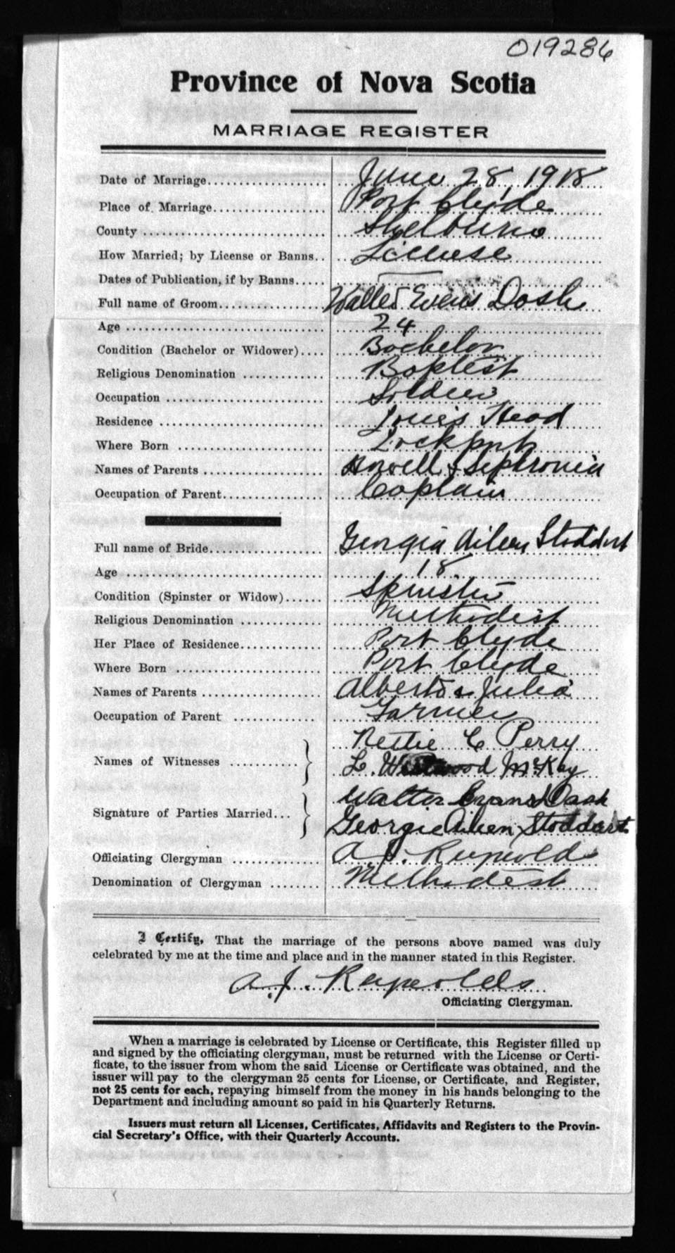 Registration: Year: 1918 number: 19286
