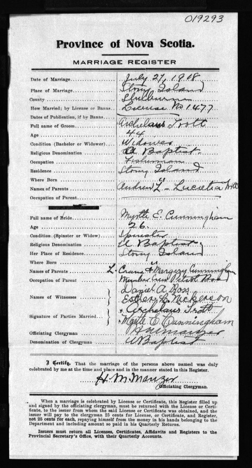 Registration: Year: 1918 number: 19293