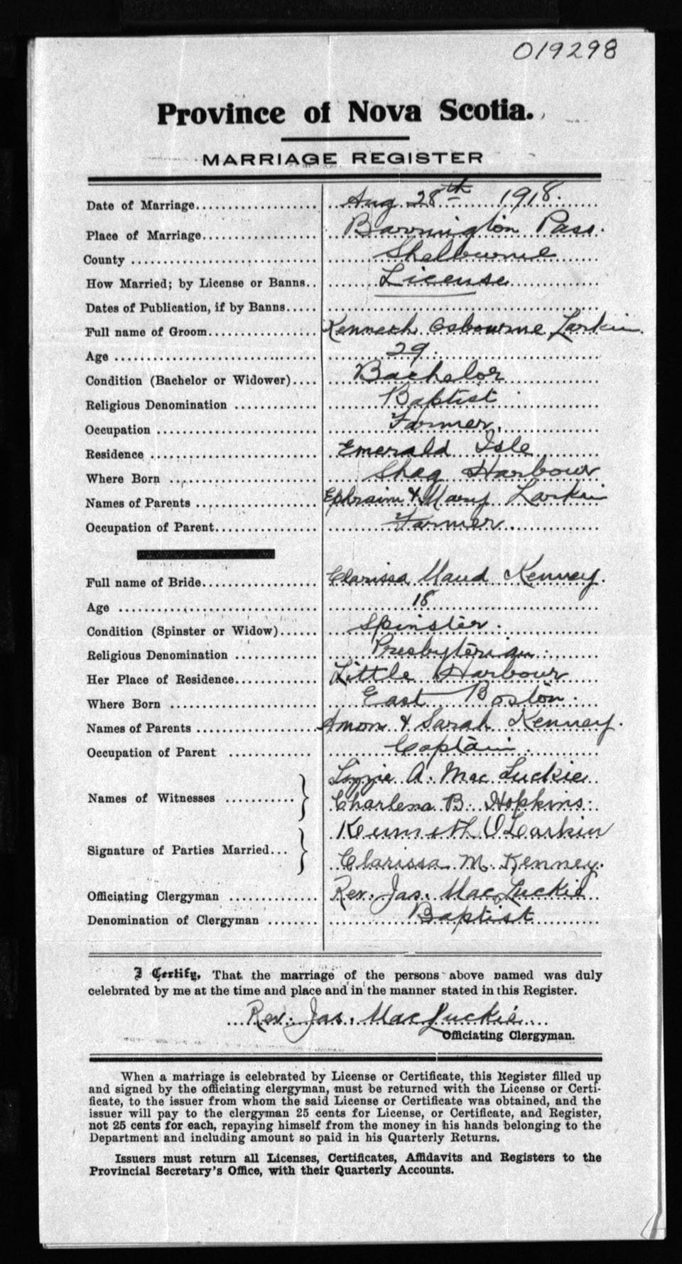 Registration: Year: 1918 number: 19298