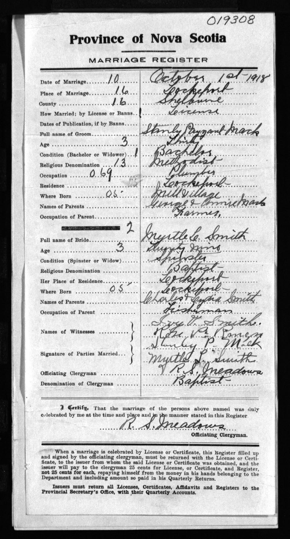 Registration: Year: 1918 number: 19308