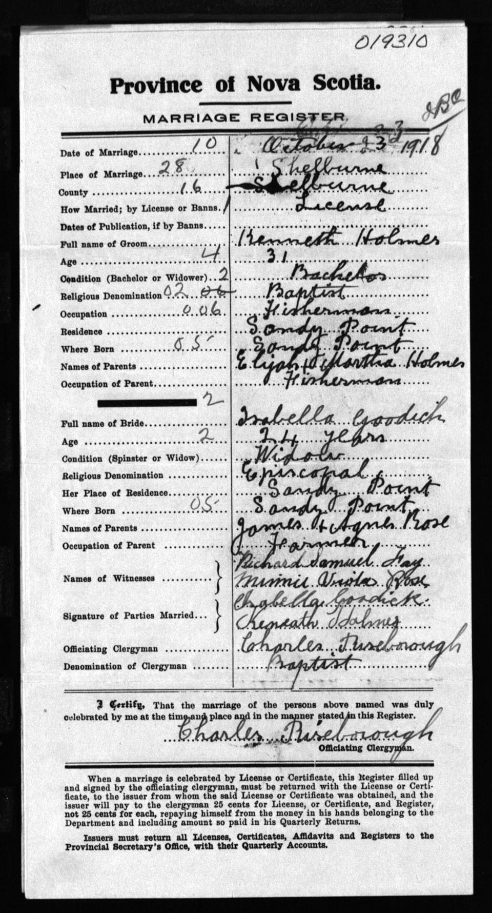 Registration: Year: 1918 number: 19310