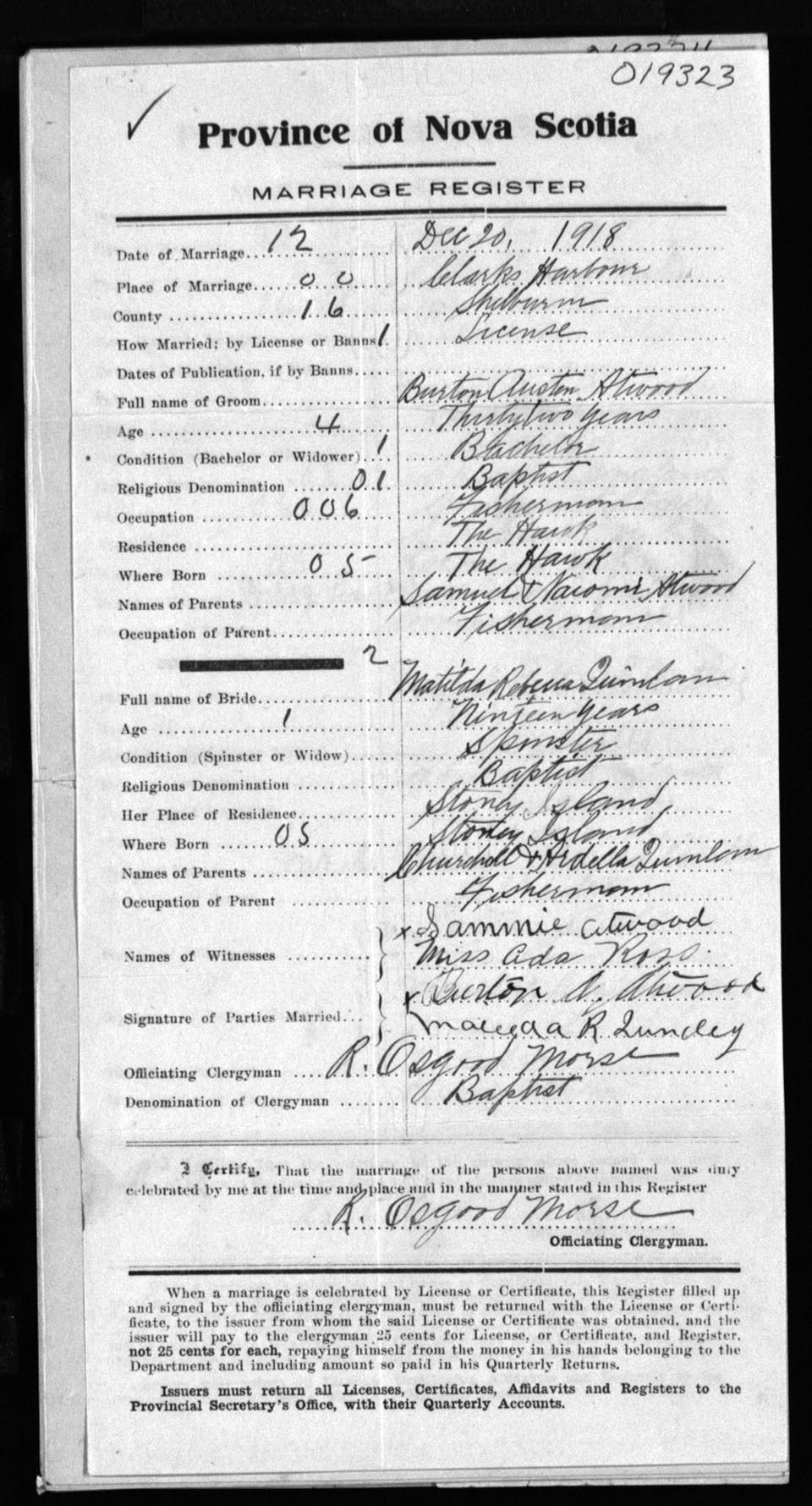 Registration: Year: 1918 number: 19323
