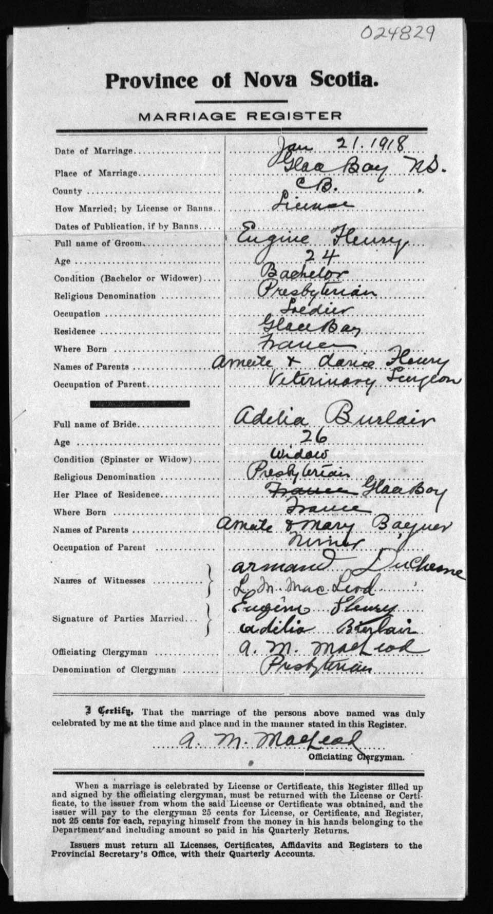 Registration: Year: 1918 number: 24829