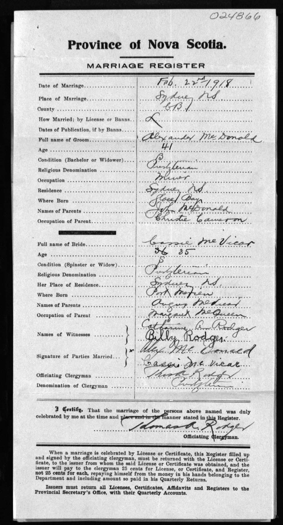 Registration: Year: 1918 number: 24866