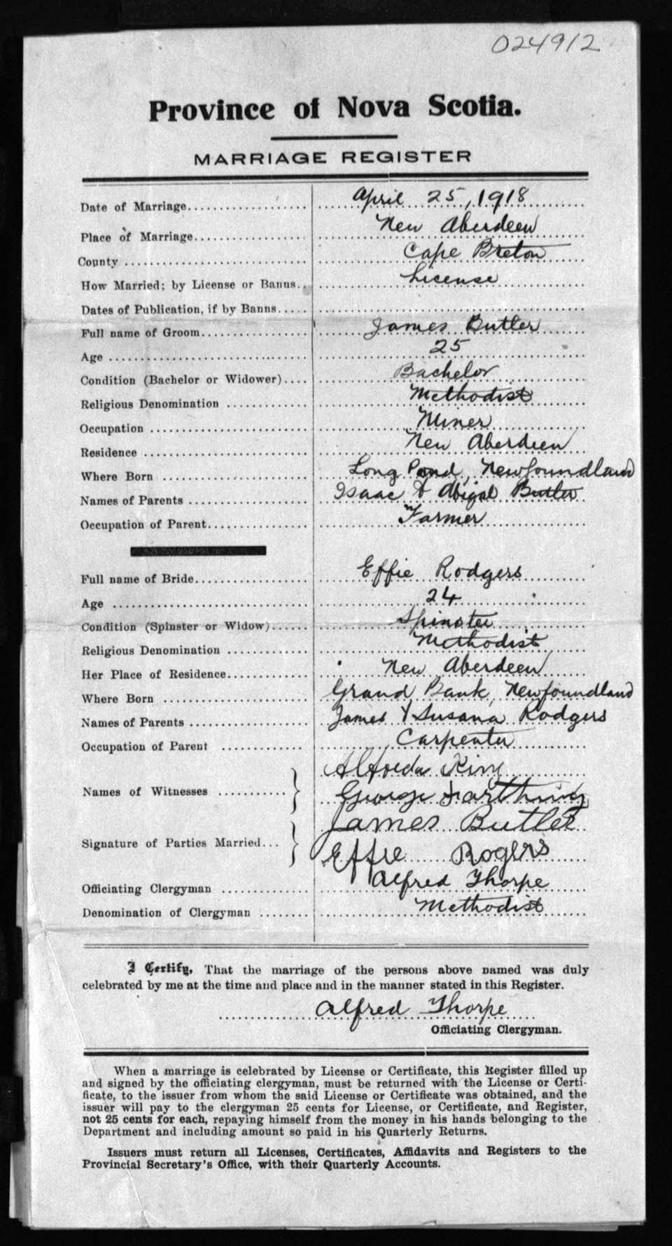 Registration: Year: 1918 number: 24912
