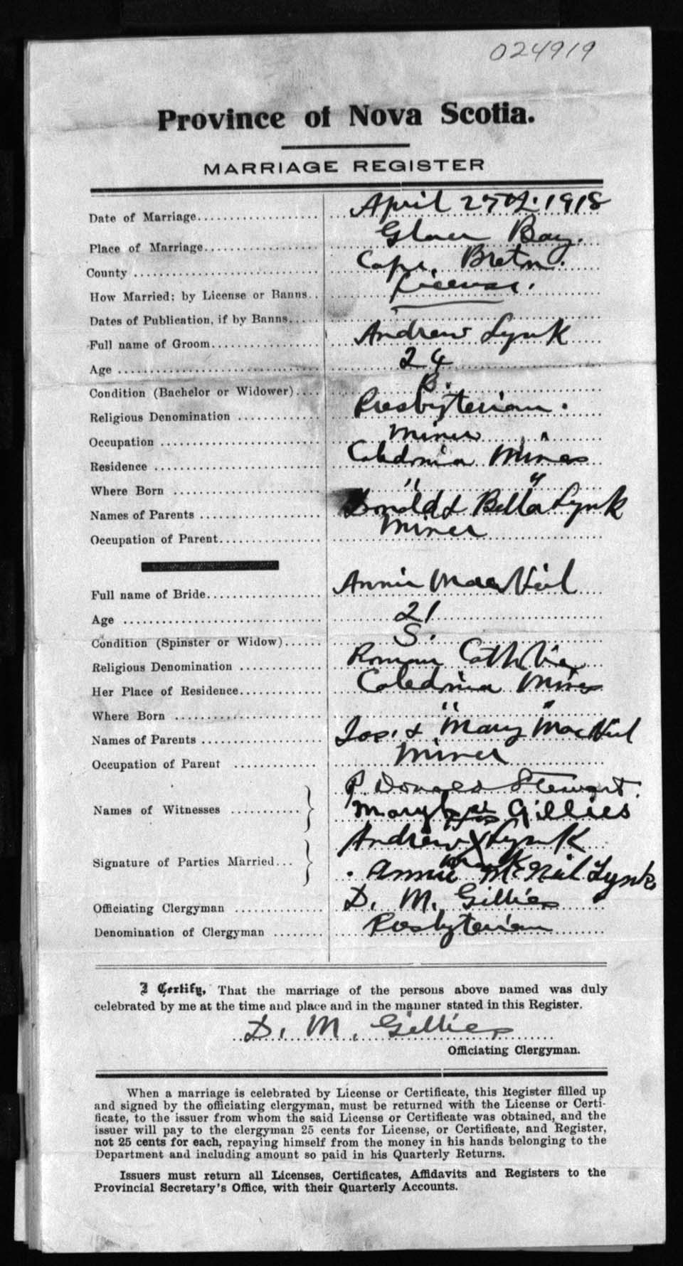 Registration: Year: 1918 number: 24919