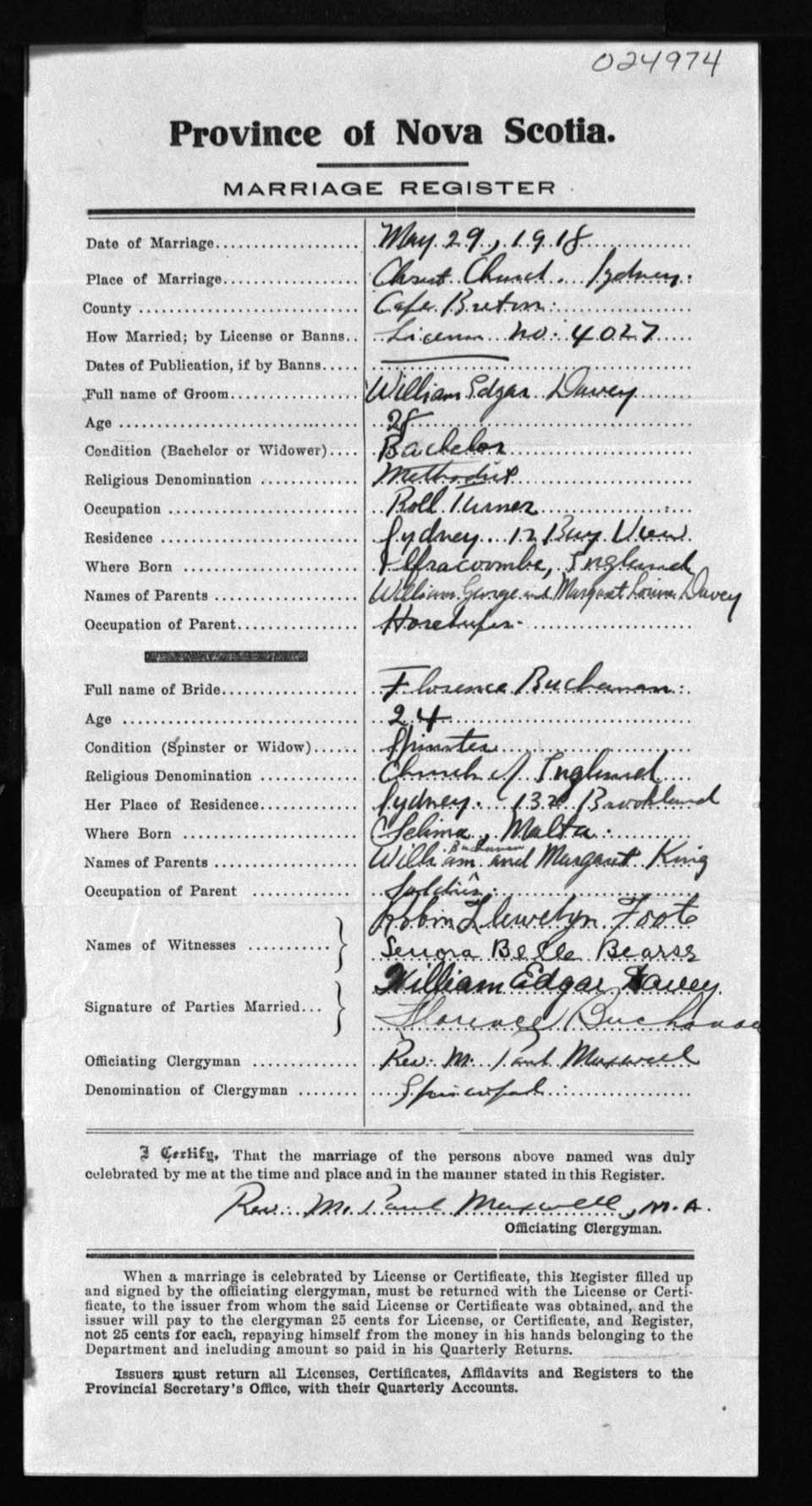 Registration: Year: 1918 number: 24974