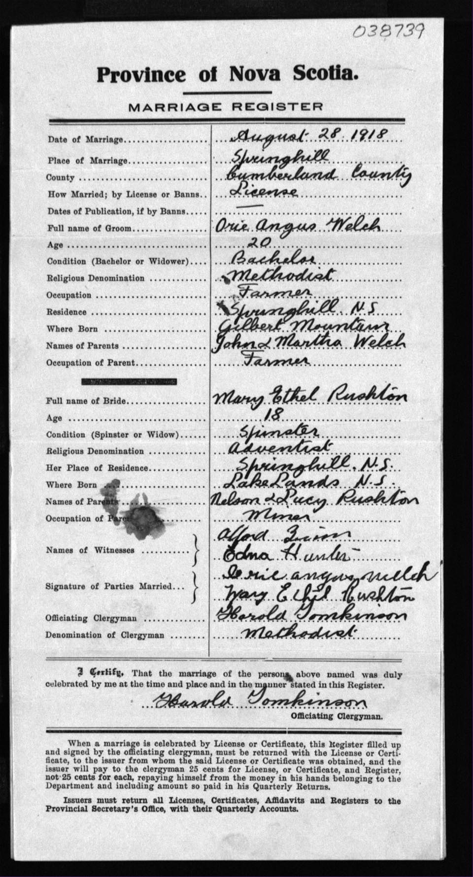 Registration: Year: 1918 number: 38739