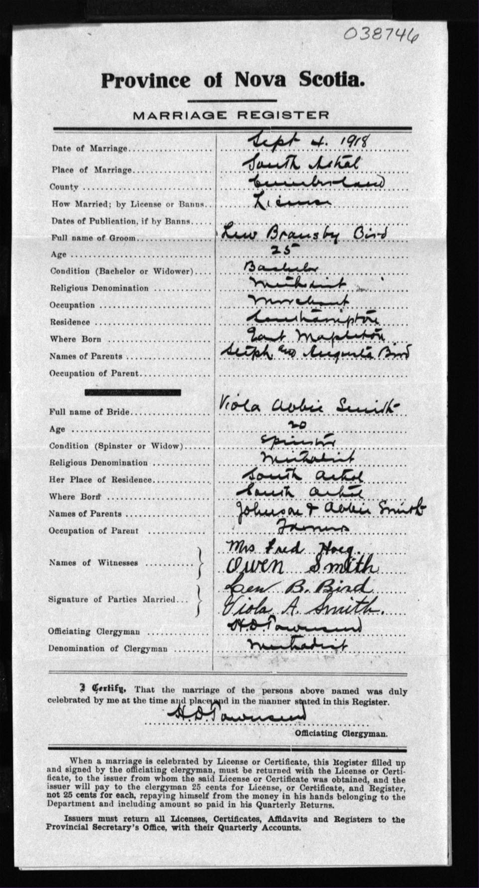 Registration: Year: 1918 number: 38746