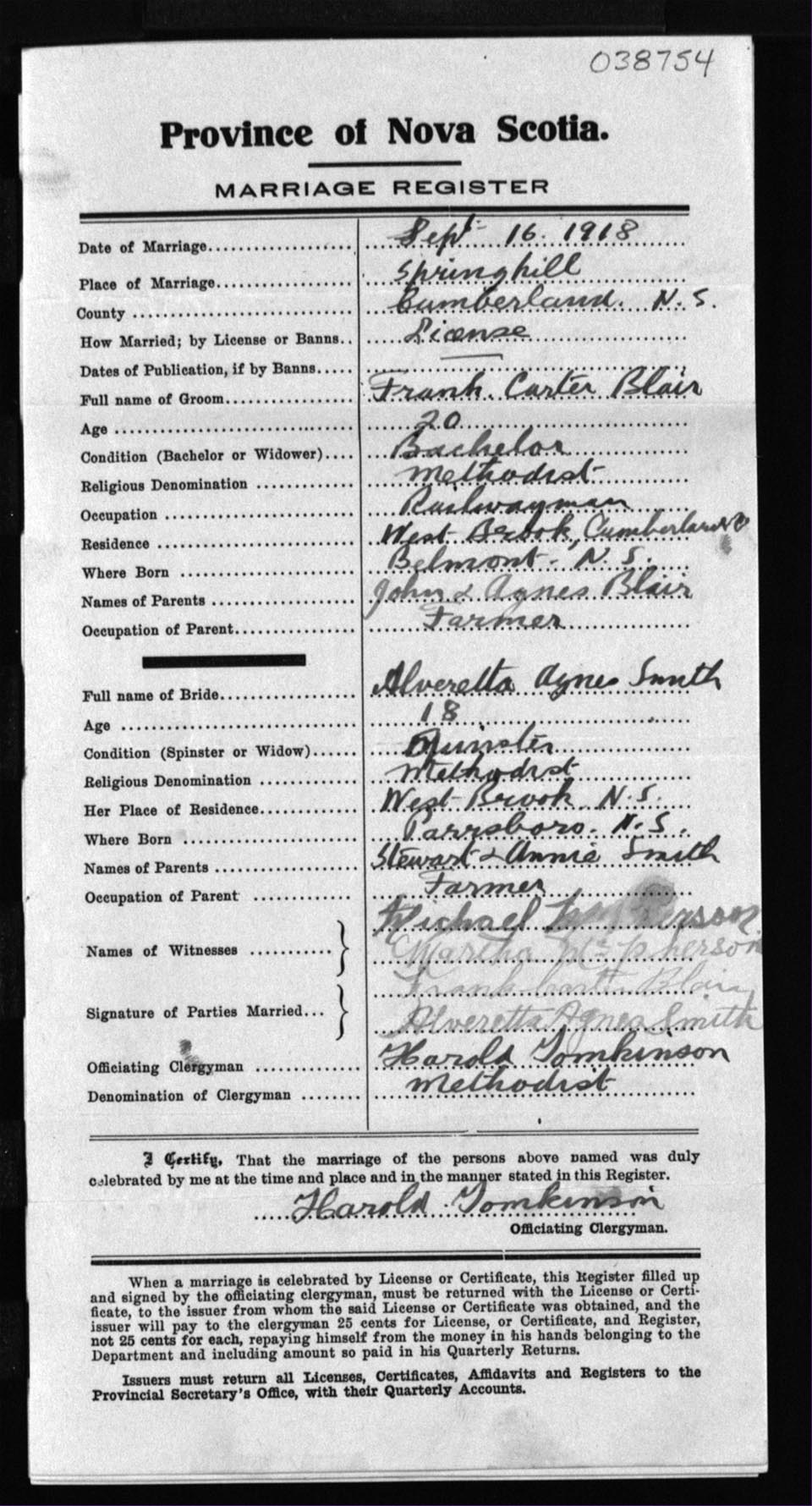 Registration: Year: 1918 number: 38754