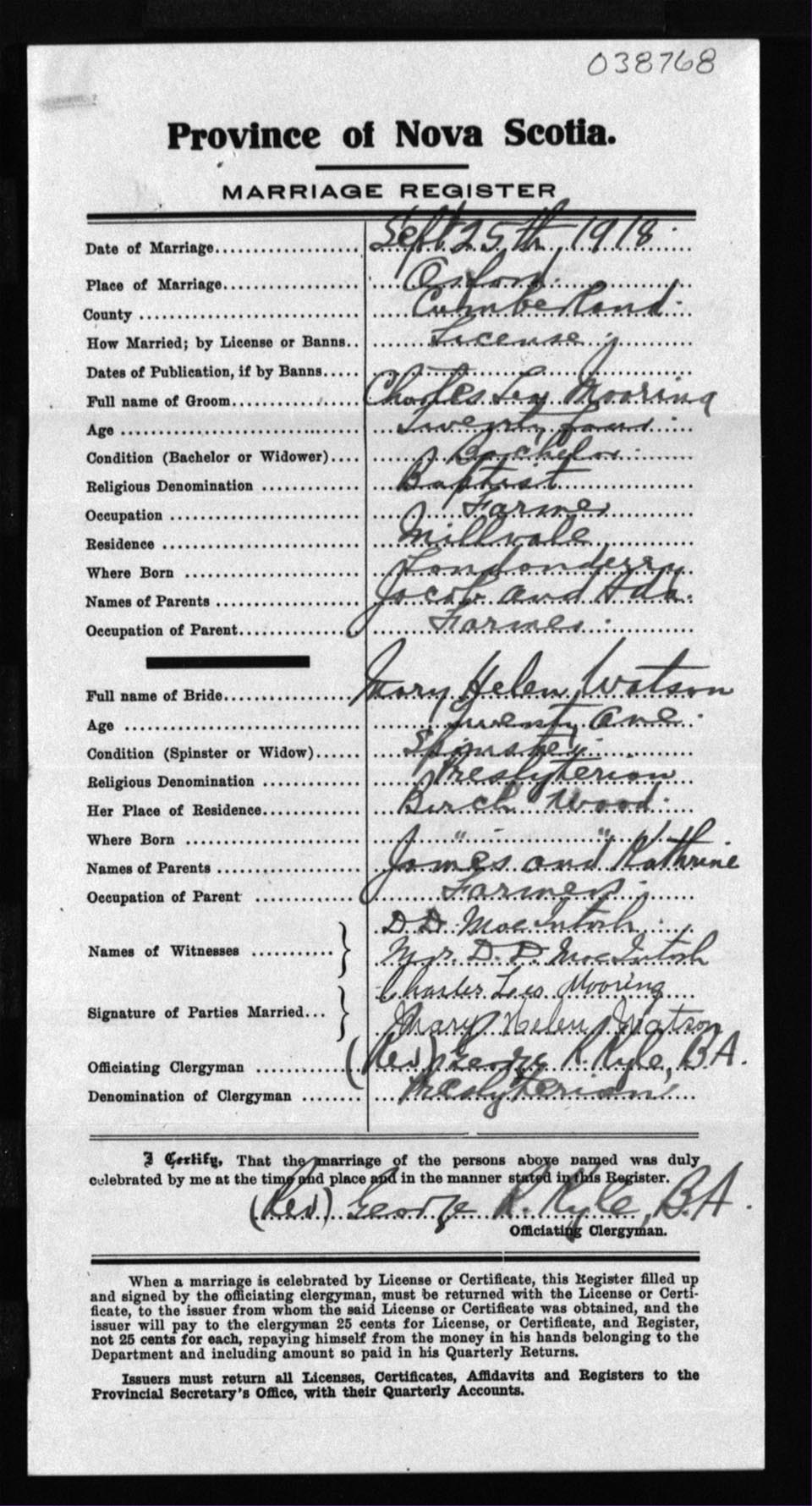 Registration: Year: 1918 number: 38768