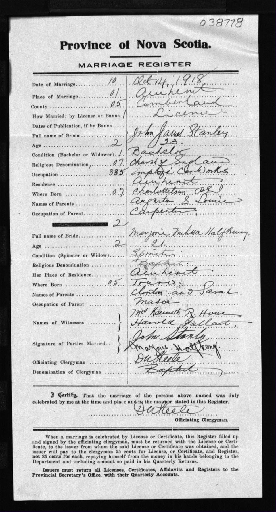 Registration: Year: 1918 number: 38778