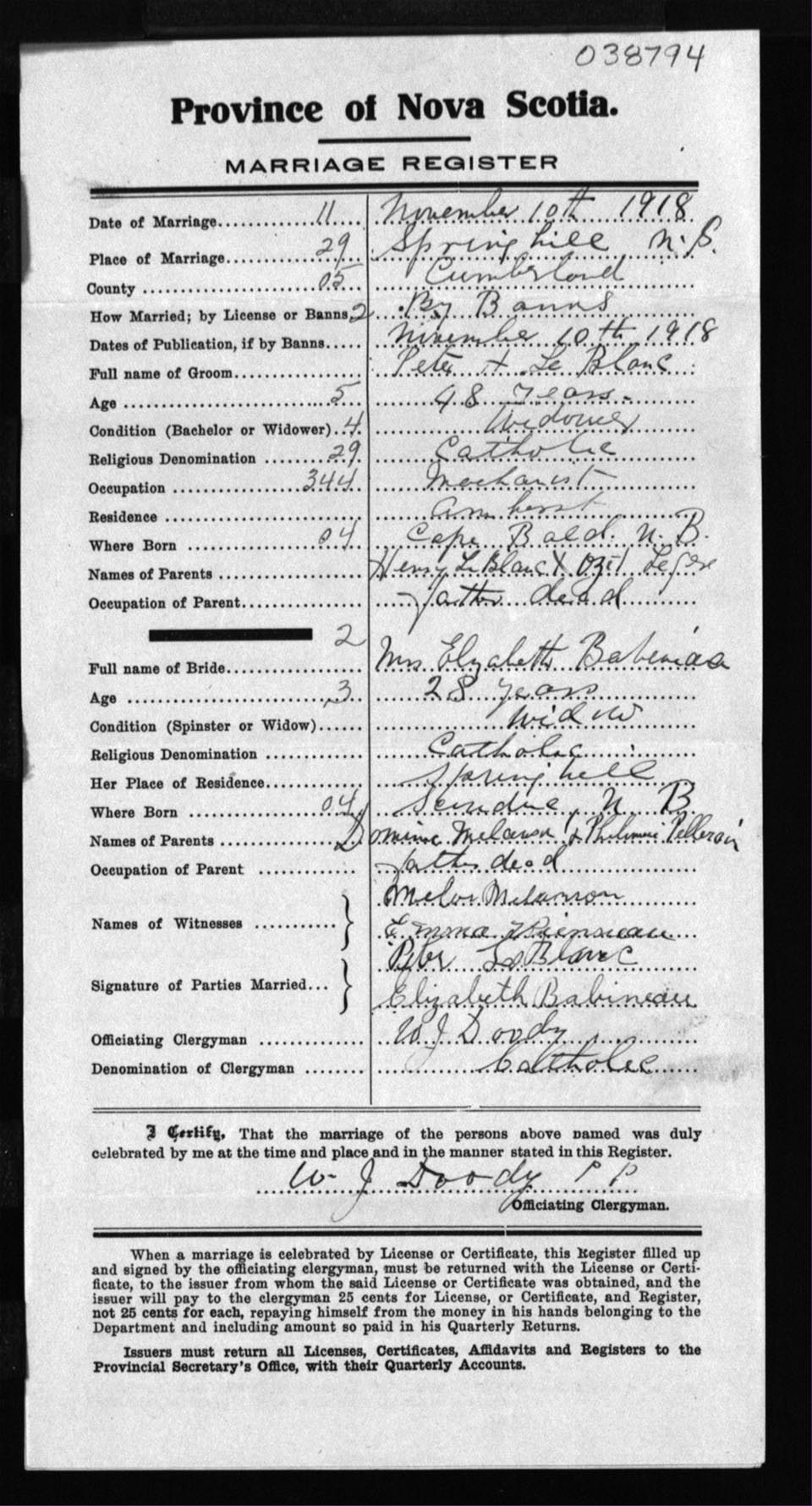 Registration: Year: 1918 number: 38794